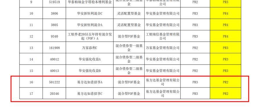 财联社记者查询发现,本次中信银行调整的产品共有17只,其中下调风险评级的有两只,为易方达管理的混合型FOF基金,均从PR3下调至PR2。其余基金均为风险评级上升。