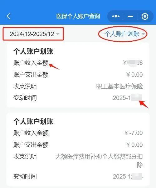 按照图示路径,选择具体查询时间,查询类别选择“医保消费”,即可查询所选时间段内的个人账户消费明细(含手工报销)。
