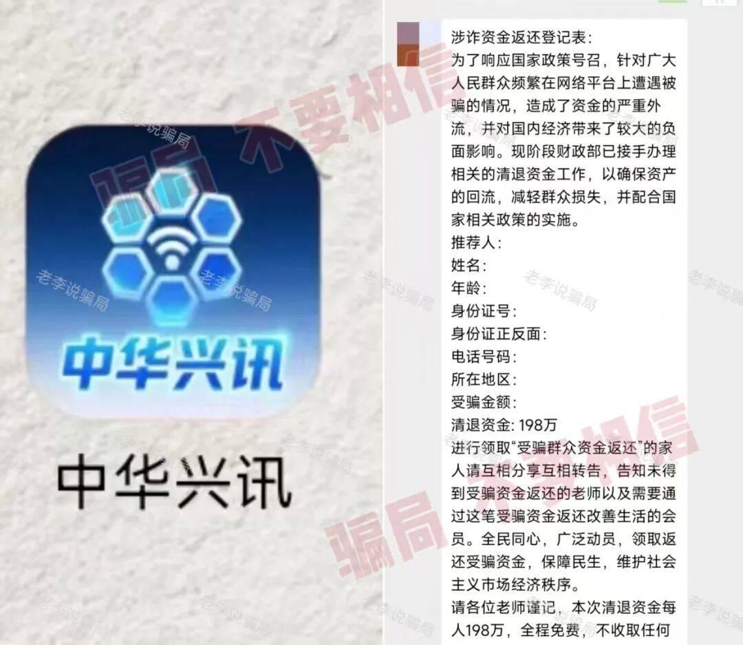 冒充“人民银行相关人员”,以“国家扶贫补贴”“受骗资金返还”为名,通过社交群发广告,号称可领取198万元高额补贴,诱导用户填写身份证、银行卡、手机号等详细信息。