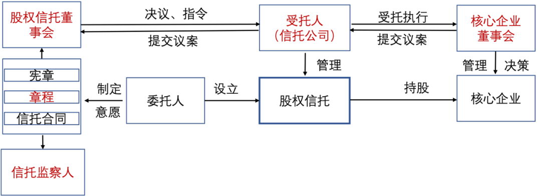 概言之,鲁冠球基金通过“委托人设立、受托人管理、监察人监督”的治理结构,成功设立了核心企业永续发展的迭代机制,在股权信托作为单一股东的情况下,通过核心企业的决策人员迭代,保证其控制权结构的有效性和一致性。该核心企业同时是两家上市公司的控股股东和一家金融机构的第二大股东。这样的治理和迭代机制当然也适用私益的股权家族信托。