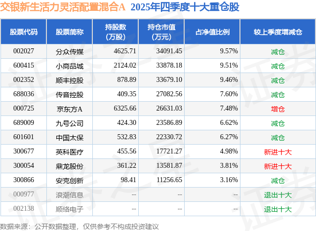 根据2025基金年报公募基金重仓股数据,重仓该股的公募基金共51家,其中持有数量最多的公募基金为交银施罗德基金的交银新生活力灵活配置混合A。交银新生活力灵活配置混合A目前规模为33.44亿元,最新净值2.2131(4月7日),较上一交易日上涨1.07%,近一年上涨13.9%。该公募基金现任基金经理为杨浩。